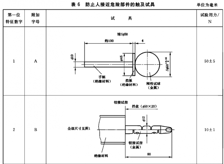 能方便地模仿人體的一部分或模仿工具或類似物,由人手持著來檢驗距離危險部件是否有足夠間隙的檢驗工具。